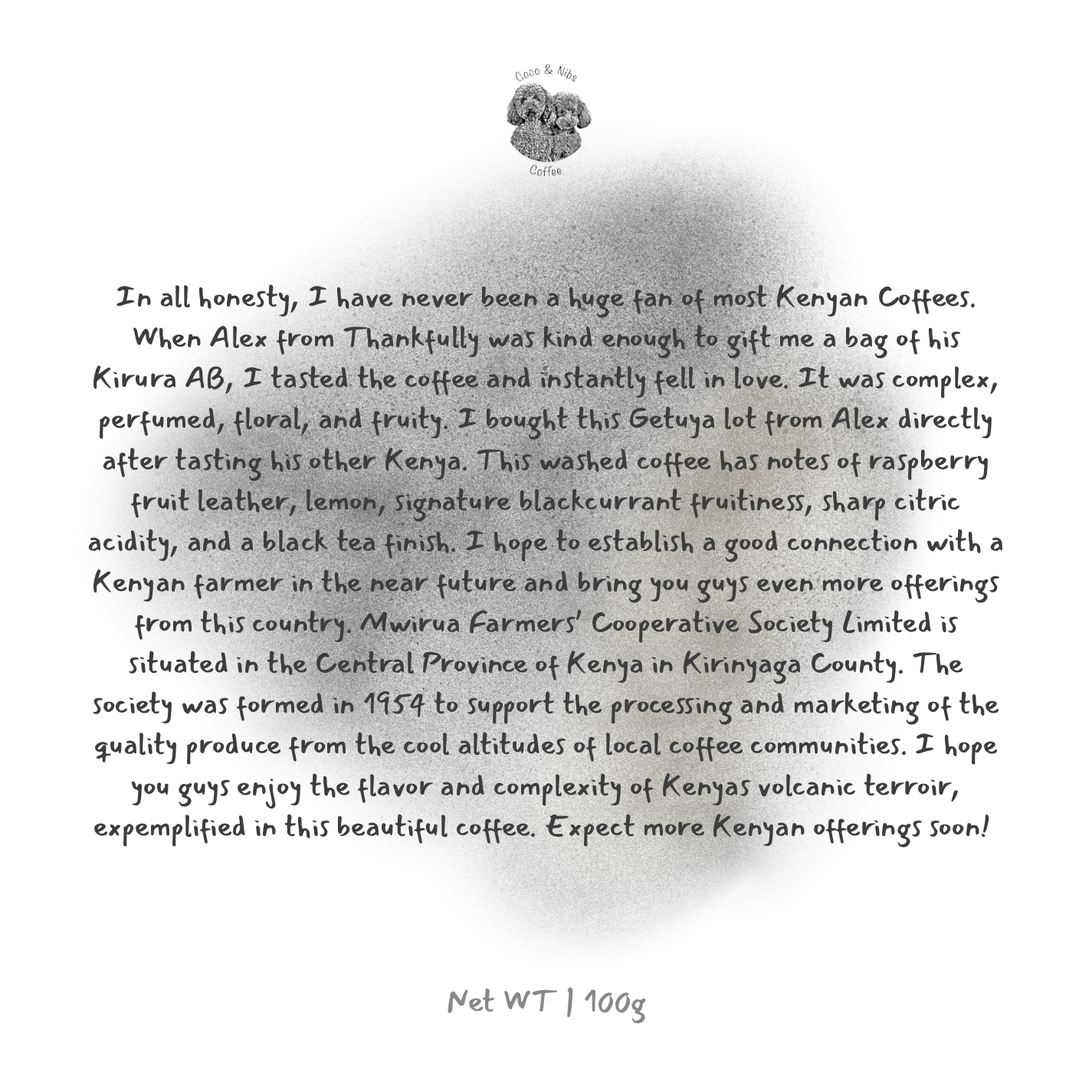 In all honesty, I have never been a huge fan of most Kenyan Coffees. When Alex from Thankfully was kind enough to gift me a bag of his Kirura AB, I tasted the coffee and instantly fell in love. It was complex, perfumed, floral, and fruity. I bought this Getuya lot from Alex directly after tasting his other Kenya. This washed coffee has notes of raspberry fruit leather, lemon, signature blackcurrant fruitiness, sharp citric acidity, and a black tea finish. I hope to establish a good connection with a Kenyan farmer in the near future and bring you guys even more offerings from this country. Mwirua Farmers’ Cooperative Society Limited is situated in the Central Province of Kenya in Kirinyaga County. The society was formed in 1954 to support the processing and marketing of the quality produce from the cool altitudes of local coffee communities. I hope you guys enjoy the flavor and complexity of Kenyas volcanic terroir, expemplified in this beautiful coffee. Expect more Kenyan offerings soon!